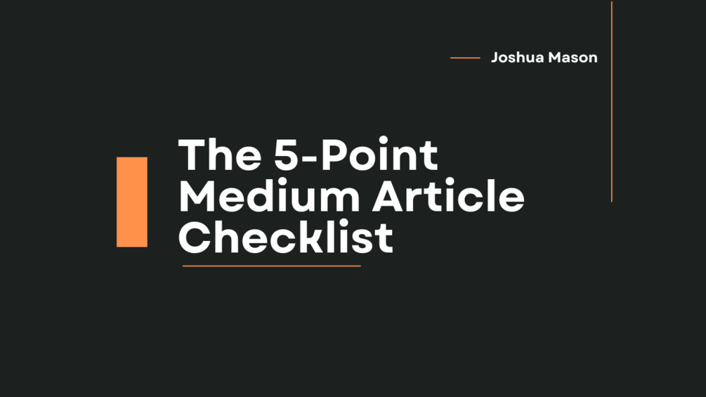 You'll get one 5-point checklist for maximizing the reads for your Medium articles.